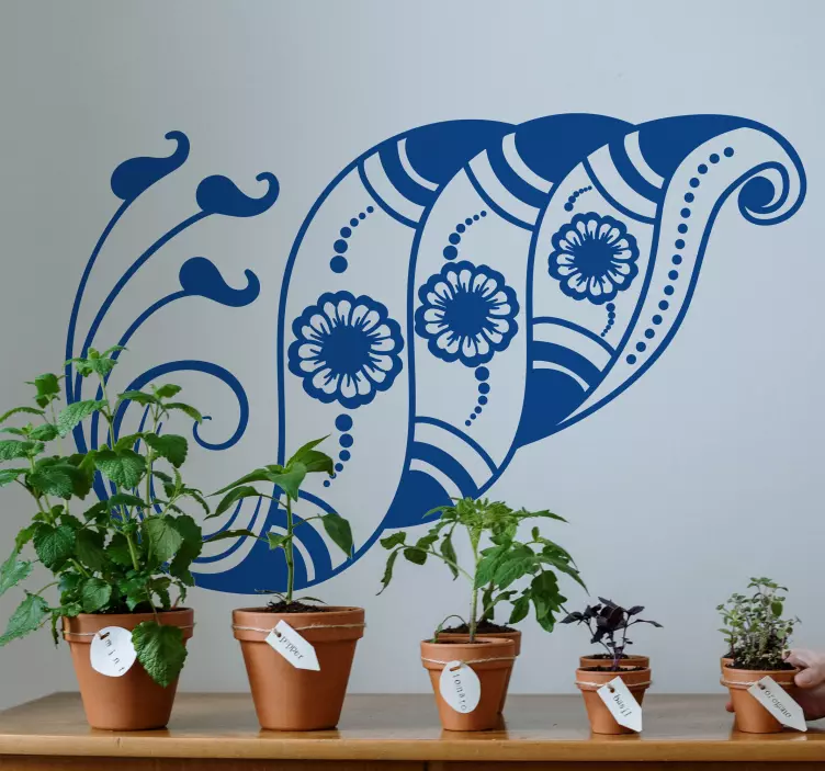 Descubre el encanto de nuestro Vinilo planta inspiración de hojas botánicas, un diseño ornamental que captura la esencia de la naturaleza. Con su cáscara delicada, flores vibrantes y patrones marineros, este vinilo te transportará a un mundo marítimo de flora exuberante y remolinos decorativos. Su estampado único es perfecto para añadir un toque fresco y natural a cualquier espacio.