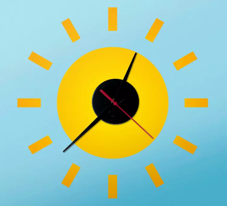 El vinilo reloj diseño sol amarillo es perfecto para transformar cualquier pared en una obra de arte. Su estilo contemporáneo e inspirador no solo te ayuda a ver la hora, sino que también añade un aire vibrante a tu hogar. Imagina cómo este reloj solar se convierte en el centro de atención de tu sala o dormitorio, deslumbrando a todos con su elegancia y colorido.