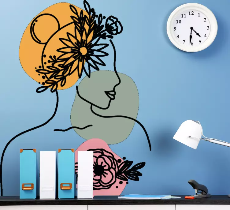 Descubre el vinilo silueta femenina elegante, una obra de arte que realza la belleza femenina a través de un diseño minimalista y abstracto. Este retrato lineal muestra un rostro femenino rodeado de delicadas flores, creando una atmósfera floral que invita a la contemplación. La combinación de arte y elegancia hace que este vinilo sea una pieza única que transforma cualquier espacio con su sofisticación.