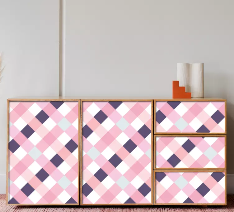 Descubre el encantador vinilo superficie patrón rosa, que destaca por su diseño a cuadros y su estampado geométrico. Este producto no solo es vistoso y moderno, sino que también aporta una textura única a tus muebles y cajones, convirtiendo cualquier rincón de tu hogar en un espacio acogedor y estilizado. Ideal para quienes buscan una forma divertida y creativa de decorar sus espacios.