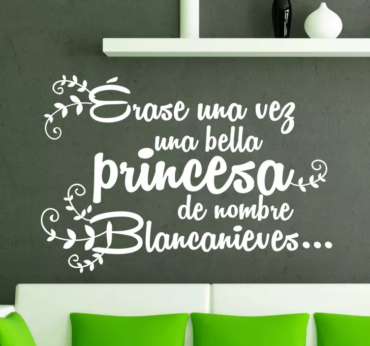 Referencia: A5688Si en vez de "Blancanieves" deseas poner el nombre de tu hija puedes indicárnoslo en el apartado de texto de la ficha de producto. Vinilos para habitación infantil con los que podrás crear un espacio de leyenda, adecuado a los gustos y aficiones de tu hija.