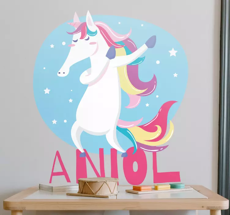 Descubre la magia del vinilo unicornio colorido bailarín, un diseño que irradia fantasía y alegría. Este encantador unicornio juguetón, con sus colores vibrantes y caprichosos, transforma cualquier espacio en un mundo de ensueño ideal para los niños. Además, su característica personalizable permite que cada niño tenga su toque especial, haciendo de este vinilo una opción única y divertida para la decoración.